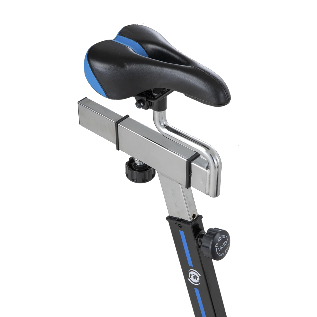 Bicicleta de spinning resistente y estable para entrenamiento cardiovascular en casa o entorno institucional, con pedaleo potente y sensación profesional.