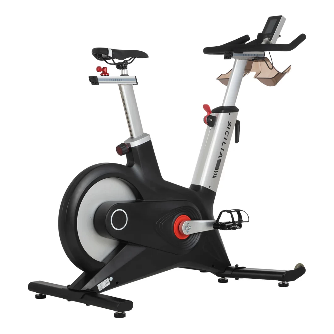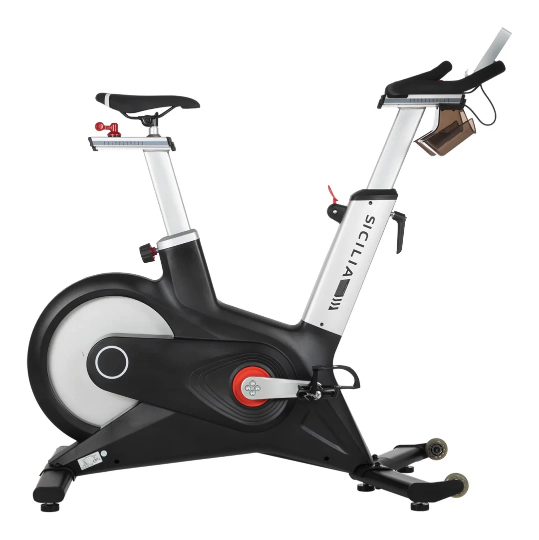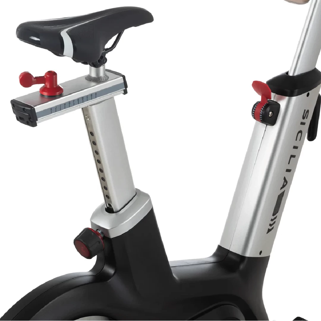 La Bicicleta Spinning Sicilia S300L Sportfitness, trabaja los siguientes músculos: cuádriceps, glúteo mayor, isquiotibiales y tríceps sural, cuenta con un monitor que mide tiempo, RPM, velocidad, distancia, calorías, WATTS.