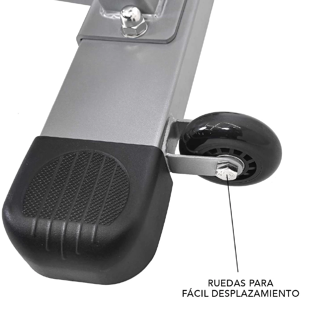 El monitor LCD integrado permite ver claramente la velocidad, distancia, tiempo y calorías, mientras que las ruedas de transporte facilitan su ubicación sin esfuerzo.
