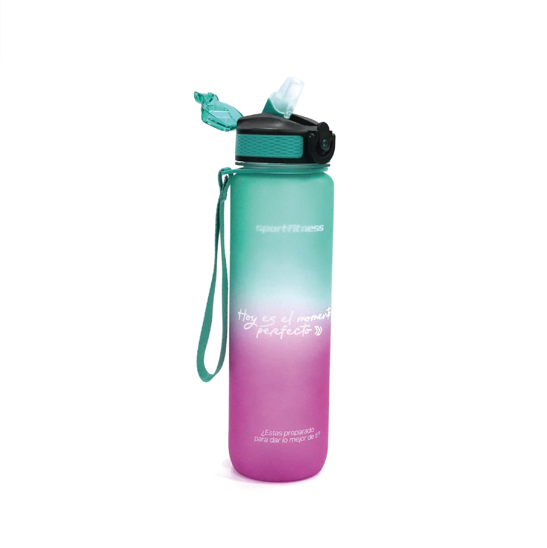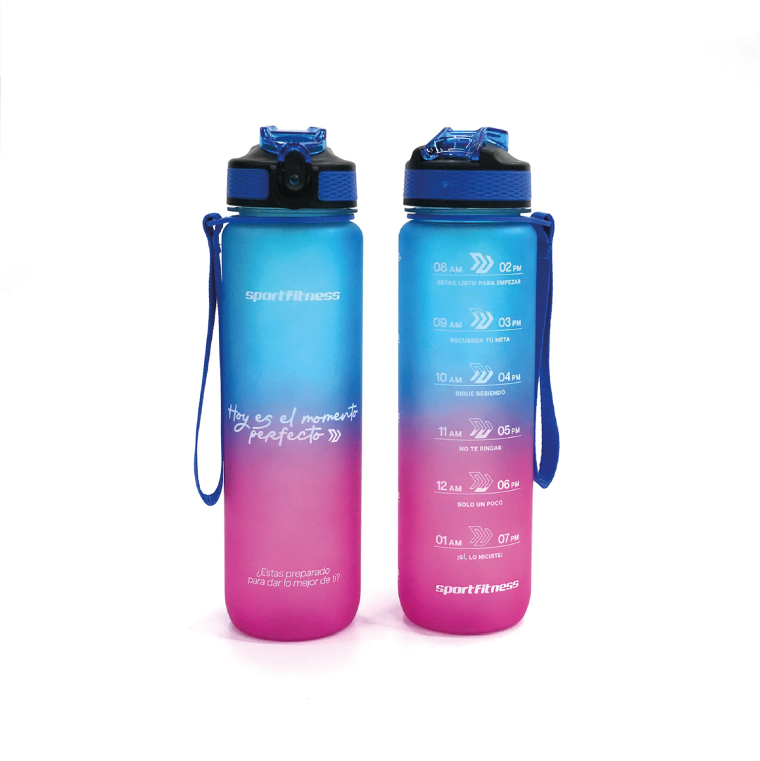 Hidrátate con la Botella Deportiva (1 Lt) Bicolor USD-909 Sportfitness. Diseño ergonómico, tapa hermética y material libre de BPA para un uso seguro y cómodo.