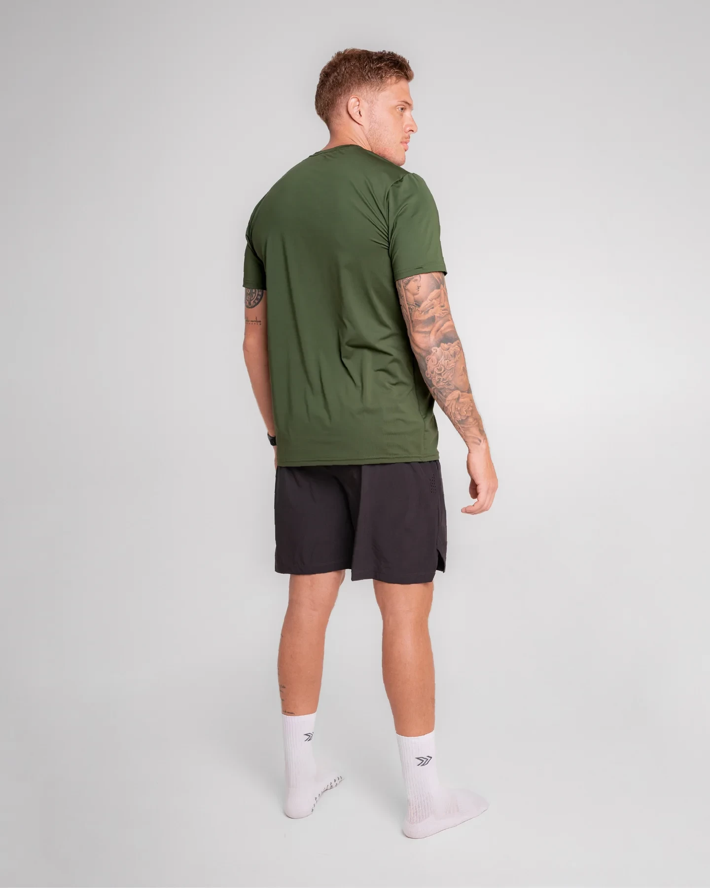 La Camiseta Manga Corta Hombre Hardy combina confort, transpirabilidad y diseño moderno, ideal para entrenamientos y uso casual.
