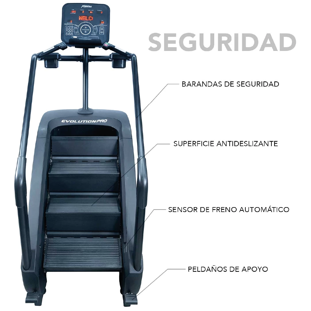 Su sistema mecánico de escalado continuo permite un entrenamiento fluido y silencioso, ideal para rutinas de cardio, HIIT y preparación funcional. Además, está equipada con una pantalla digital intuitiva que permite controlar datos clave como pasos por minuto, tiempo, calorías, nivel de intensidad y ritmo cardíaco (si se conecta banda).