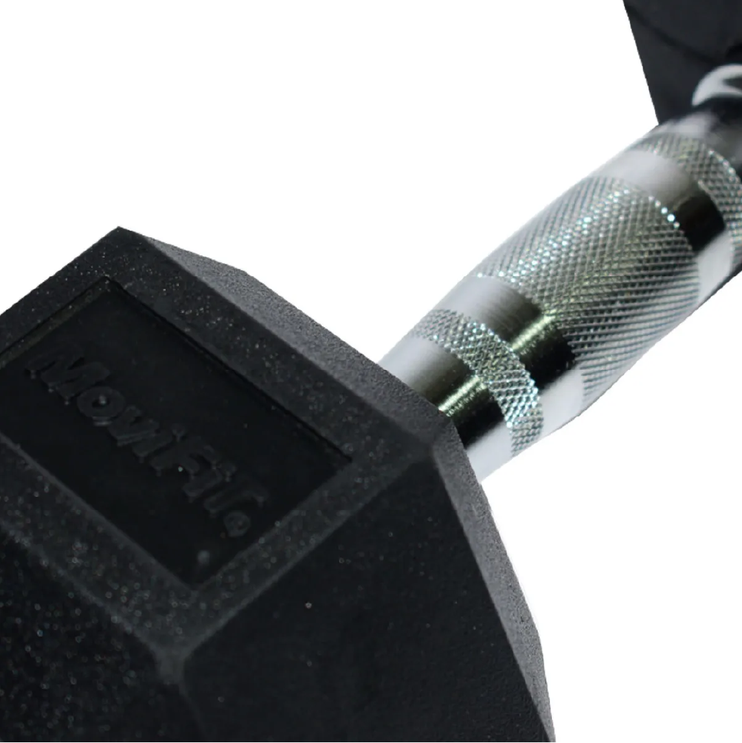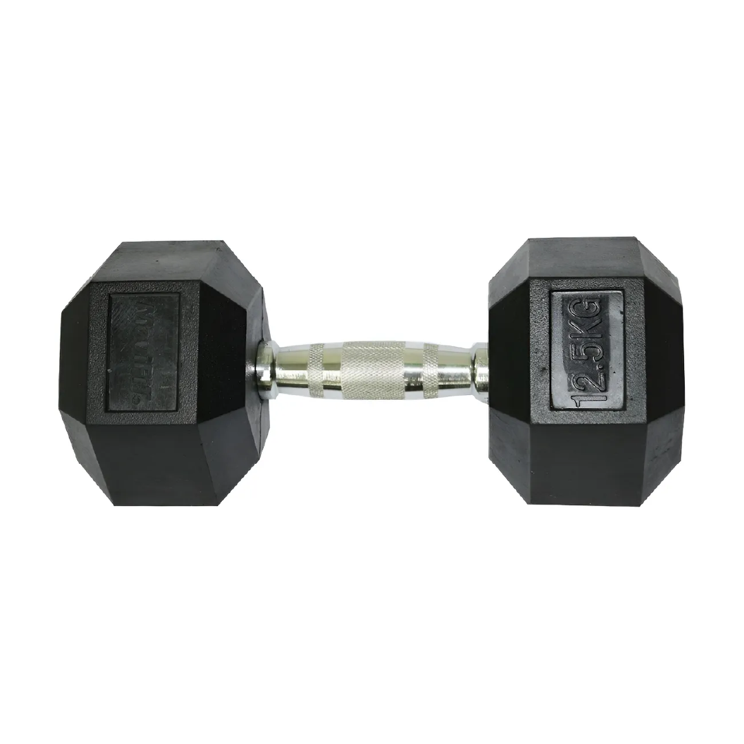 La Mancuerna Hexagonal Encauchetada Movifit de 12.5KG es perfecta para entrenamientos de fuerza, con diseño ergonómico y recubrimiento de caucho para máxima seguridad y durabilidad.