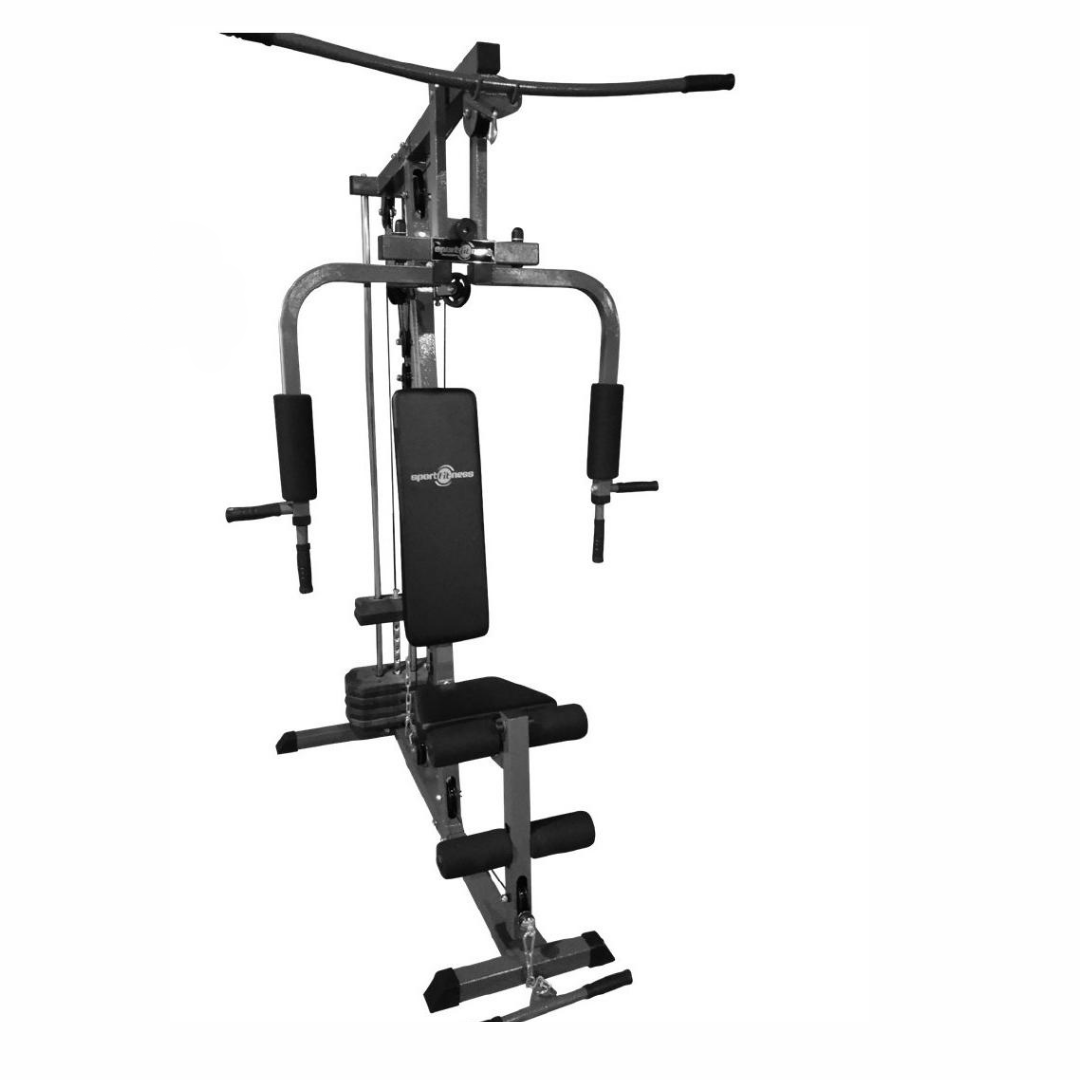 Su estructura resistente está diseñada para ofrecer estabilidad y seguridad, incluso en sesiones intensas. Cuenta con un sistema de poleas, banco con respaldo ajustable, soporte para piernas y peck deck, lo que la convierte en una opción versátil para ejercitar pecho, espalda, hombros, bíceps, tríceps, piernas y abdominales.