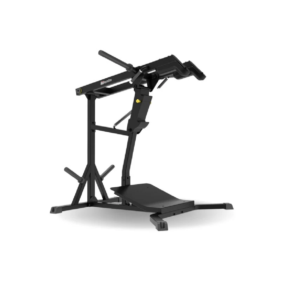 La máquina Sentadilla y Pantorrilla Apalancada IFP1707 ofrece un diseño ergonómico y carga ajustable, ideal para entrenar el tren inferior de manera segura y eficiente.