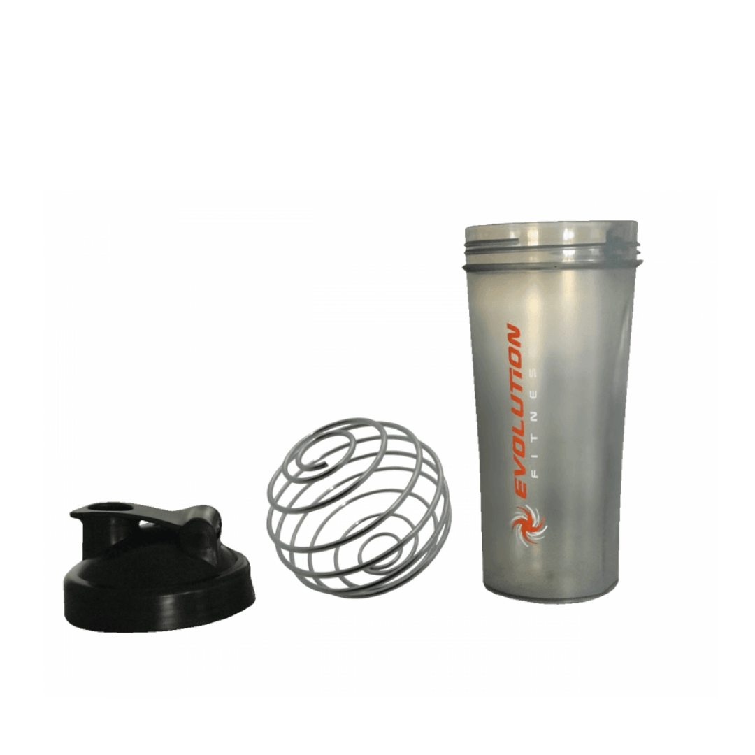 Shaker Evolution de 700 ml con mezclador tipo resorte de acero inoxidable. Ideal para batidos de proteína, creatina y suplementos. Cierre hermético, diseño ergonómico y libre de BPA.