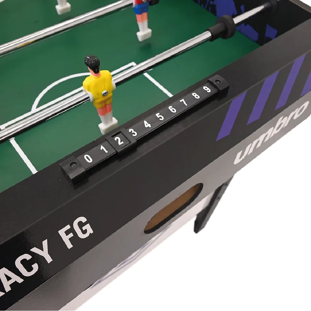 Con un sistema de barras telescópicas de acero, rodamientos que mejoran la velocidad de respuesta y jugadores moldeados con alto detalle, el Accuracy FG asegura partidos intensos y duraderos. Su superficie de juego anti-reflejo permite una mejor visibilidad y control, mientras que sus patas niveladoras garantizan estabilidad en cualquier tipo de piso.