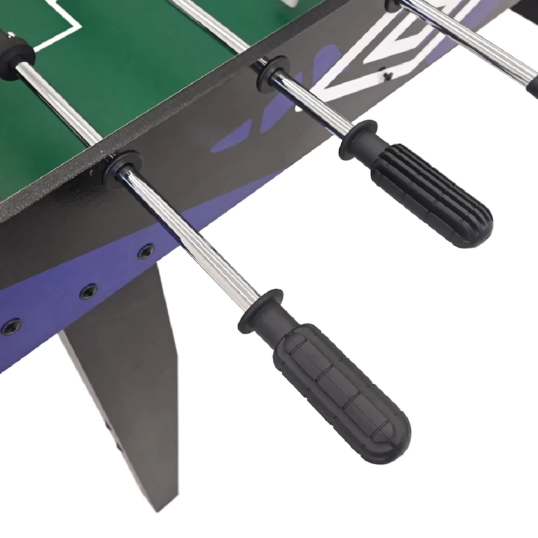 Gracias a su diseño ergonómico y materiales de alta calidad, este futbolín es perfecto tanto para uso recreativo como para competiciones casuales. Su estética moderna en tonos oscuros combina perfectamente con ambientes deportivos y profesionales.