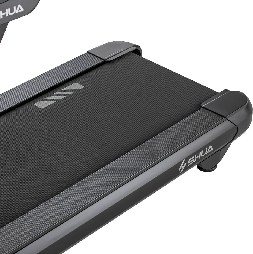 La Trotadora SHUA X5 cuenta con amplia superficie de carrera de 145 x 52 cm, brindando comodidad y seguridad durante la zancada. Esta dimensión favorece entrenamientos estables incluso a velocidades elevadas.