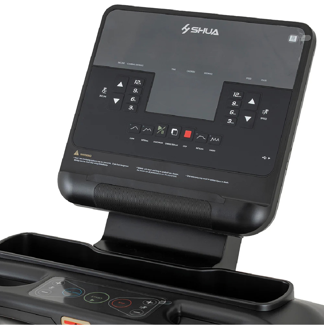La Trotadora SHUA X5 está diseñada para llevar el entrenamiento cardiovascular a un nivel profesional. Fabricada con chasis en acero y pintura electrostática, ofrece una estructura robusta capaz de soportar sesiones intensivas en entornos institucionales.